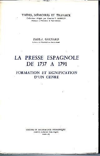 Read LA PRESSE ESPAGNOLE DE 1737 A 1791. FORMATION ET SIGNIFICATION D'UN GENRE. PDF PDF Download ... Read online or download eBook ePub LA PRESSE ESPAGNOLE DE 1737 A 1791. FORMATION ET SIGNIFICATION D'UN GENRE. PDF in PDF ... Download ebook PDF LA PRESSE ESPAGNOLE DE 1737 A 1791. FORMATION ET SIGNIFICATION D'UN GENRE. Download pdf epub ...