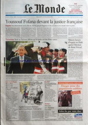 Free MONDE (LE) [No 19008] du 05/03/2006 - YOUSSOUF FOFANA DEVANT LA JUSTICE FRANCAISE - ENQUETE - NOS INFORMATIONS SUR LE ROLE DU CHEF DU GANG DE BAGNEUX ET DES MEMBRES DE LA BANDE SELON LA POLICE - TERRORISME - BUSH AU PAKISTAN AFFIRME QU'AL-QAIDA EST LOIN D'ETRE VAINCU - MINCES LUEURS D'ESPOIR EN HAITI APRES L'ELECTION DE RENE PREVAL PAR ERIC LESER - SUEZ-GAZ DE FRANCE - BRUXELLES DEMANDE DES EXPLICATIONS A PARIS - EGALITE HOMMES-FEMMES - APRES LA POLITIQUE, L'ENTREPRISE - FOOTBALL - PDF Download