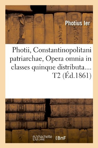 This Photii, Constantinopolitani patriarchae, Opera omnia in classes quinque distributa. Tome 2 (Éd.1861) PDF ePub book is available for free! To be able to get this Photii, Constantinopolitani patriarchae, Opera omnia in classes quinque distributa. Tome 2 (Éd.1861) PDF Kindle book,