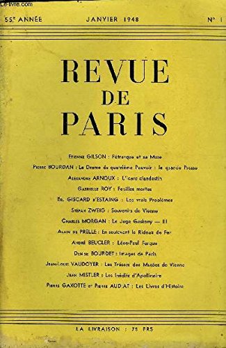 Do not forget to read this Free REVUE DE PARIS 55e ANNEE N°1 - Etienne GILSON : Pétrarque et sa Muse Pierre BOURDAN : Le Drame du quatrième Pouvoir : la grande Presse Alexandre ARNOUX : L'Icare clandestin Gabrielle ROY : Feuilles mortes Ed. GISCARD d’ESTAING PDF Download book is my friend.